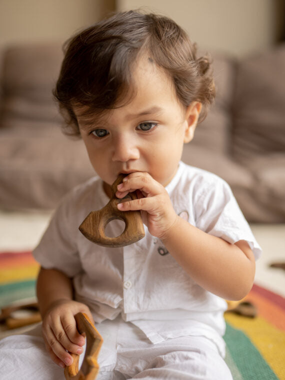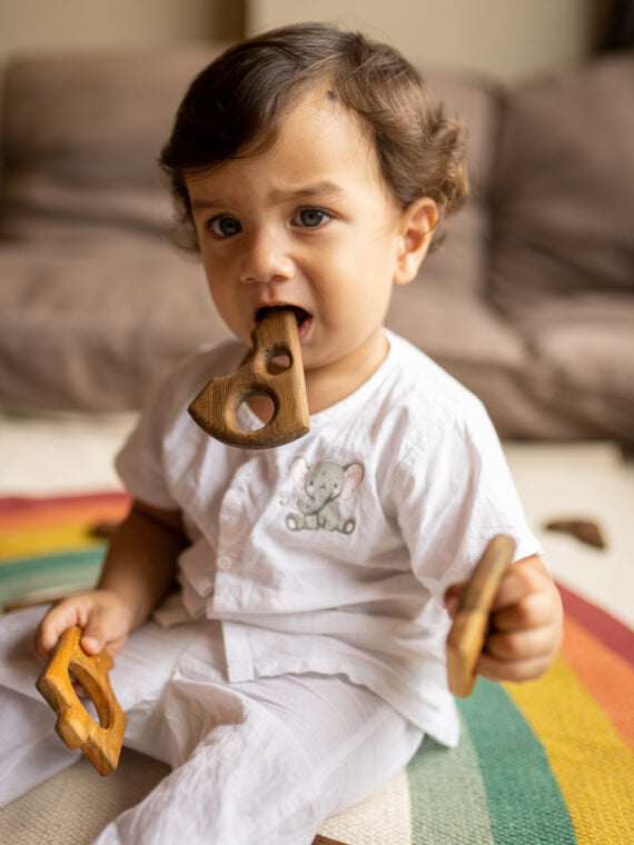 For added care, apply a light coating of coconut oil after several washes. This not only safeguards the teether's quality but also eliminates germs.